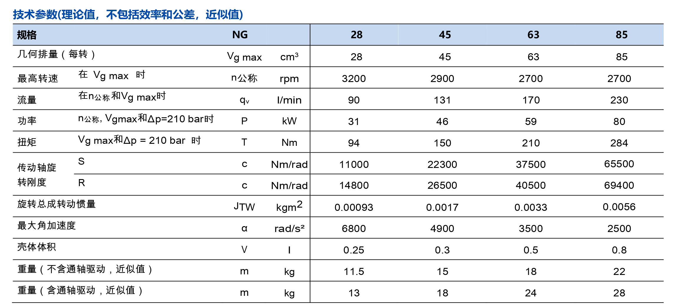 公称压力210bar